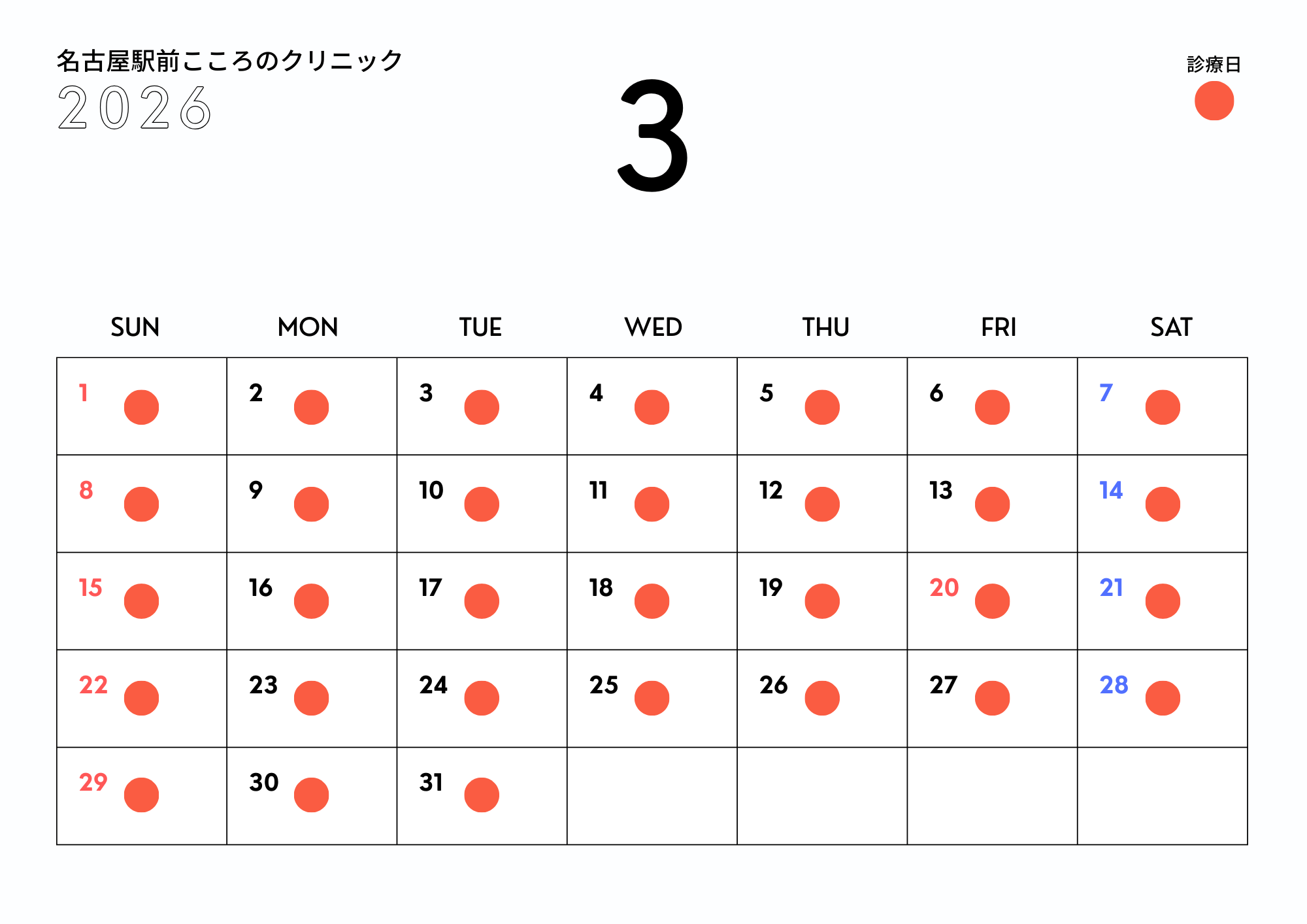 2026年3月の診療日について、ご案内申し上げます。